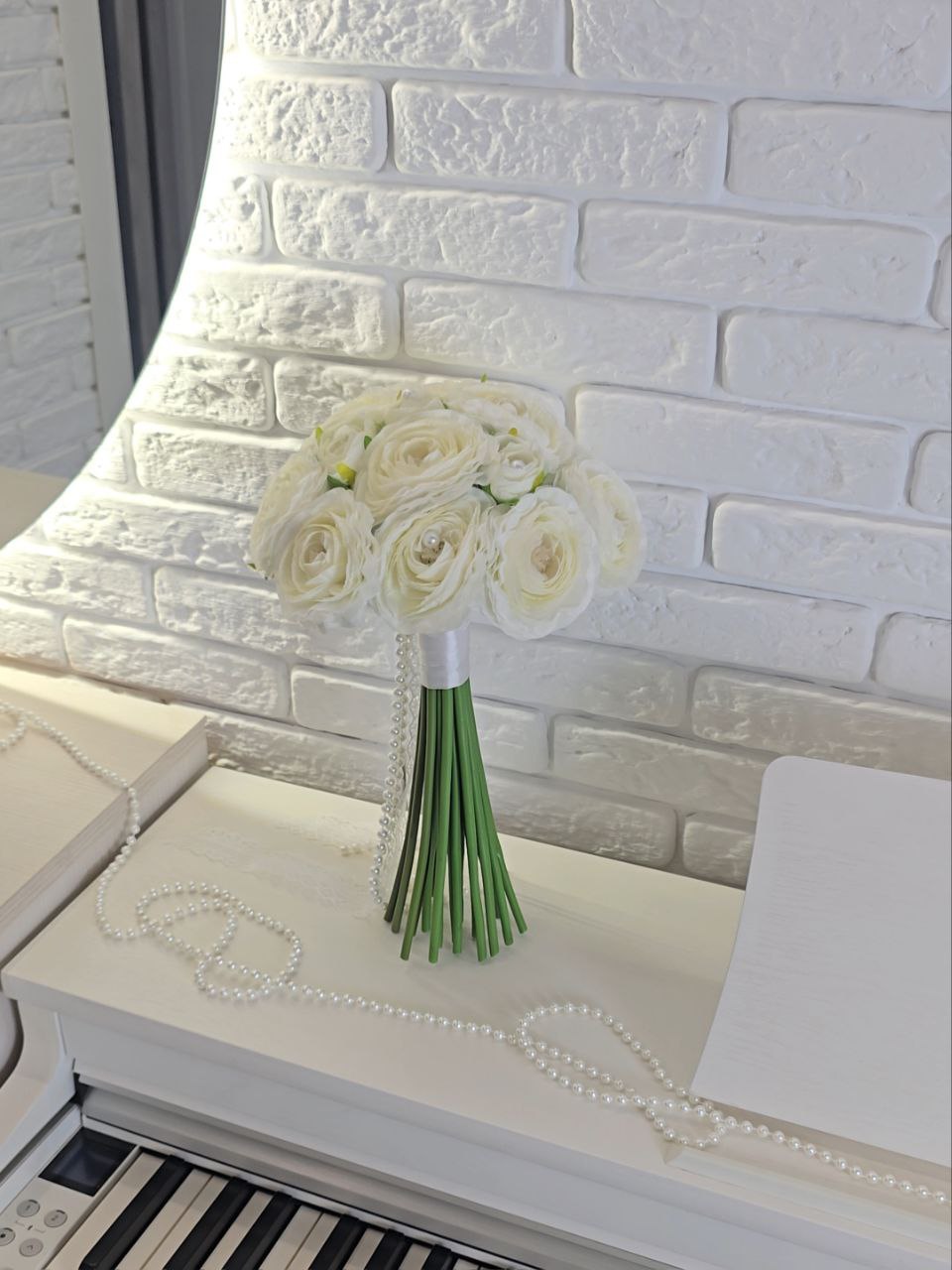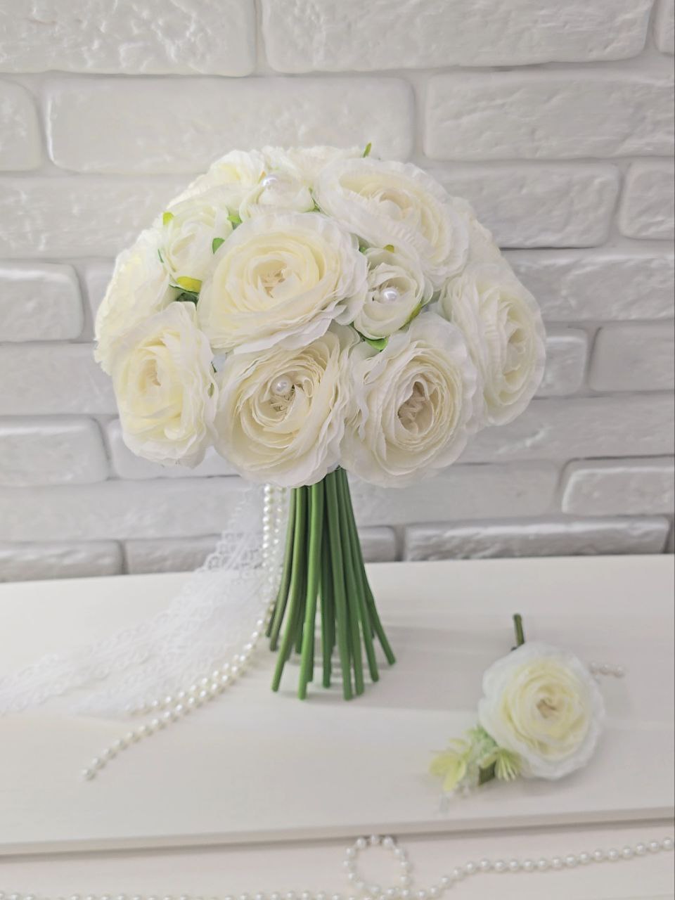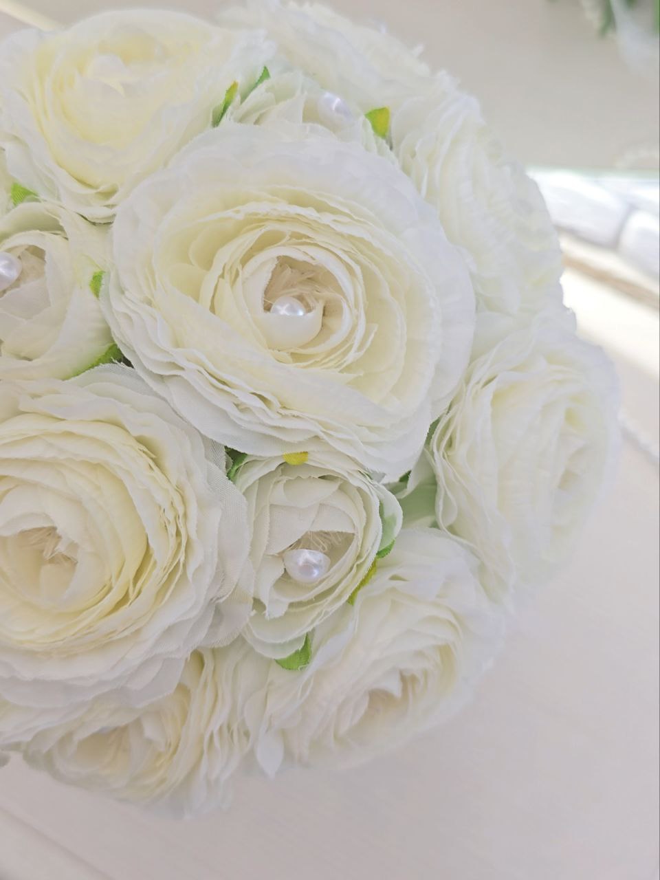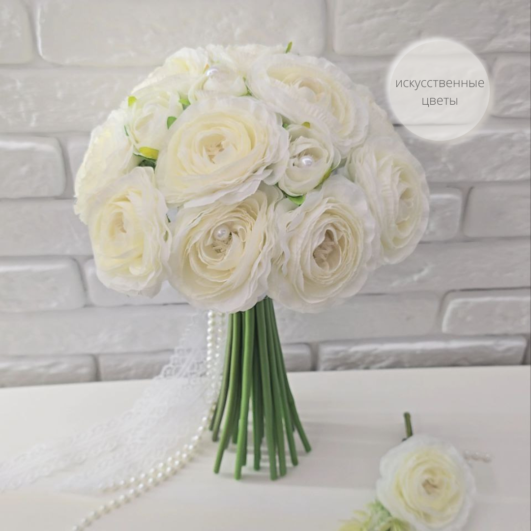 Описание: Романтичный букет круглой формы из ранункулюсов премиум- качества